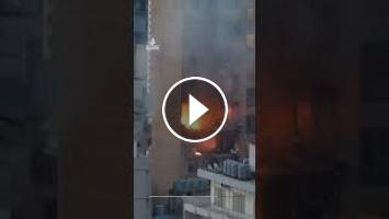 A residential building in central Beirut was seen with flames erupting from a hole in its side after what appears to have been another Israeli strike.