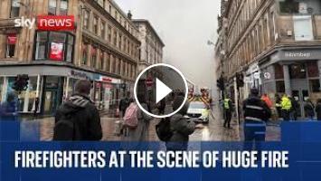 Watch near the huge fire which erupted yesterday evening at a vape shop in Union Street near Glasgow Central station.