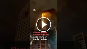 Flames engulfed Kuwait’s Public Institution for Social Security high-rise headquarters after it was hit by a suspected drone amid a wave of Iranian aerial strikes on the country.