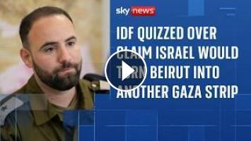 Sky's Cordelia Lynch quizzed him over claims from Israel's finance minister that the IDF would turn the southern suburbs of Beirut into another Gaza Strip.