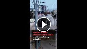 Video shows the moment an Iranian missile struck central Israel, part of a barrage that killed two people and wounded two others. Hours later, Hezbollah rockets hit Israel, injuring 16 more and damaging a daycare centre.