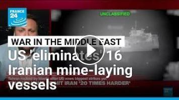 The U.S. military "eliminated" 16 Iranian mine-laying vessels near the Strait of Hormuz on Tuesday, the U.S. Central Command said in a statement, as President Donald Trump warned that any mines laid in the Strait by Iran must be removed immediately. Trump previously said the U.S. had "completely destroyed" 10 inactive mine-laying vessels. FRANCE 24's Fraser Jackson reports from Washington.